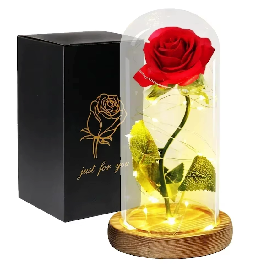 Róża z efektem LED w szkle- prezent na walentynki