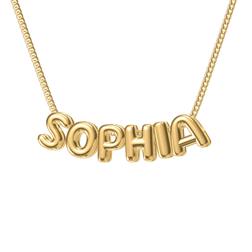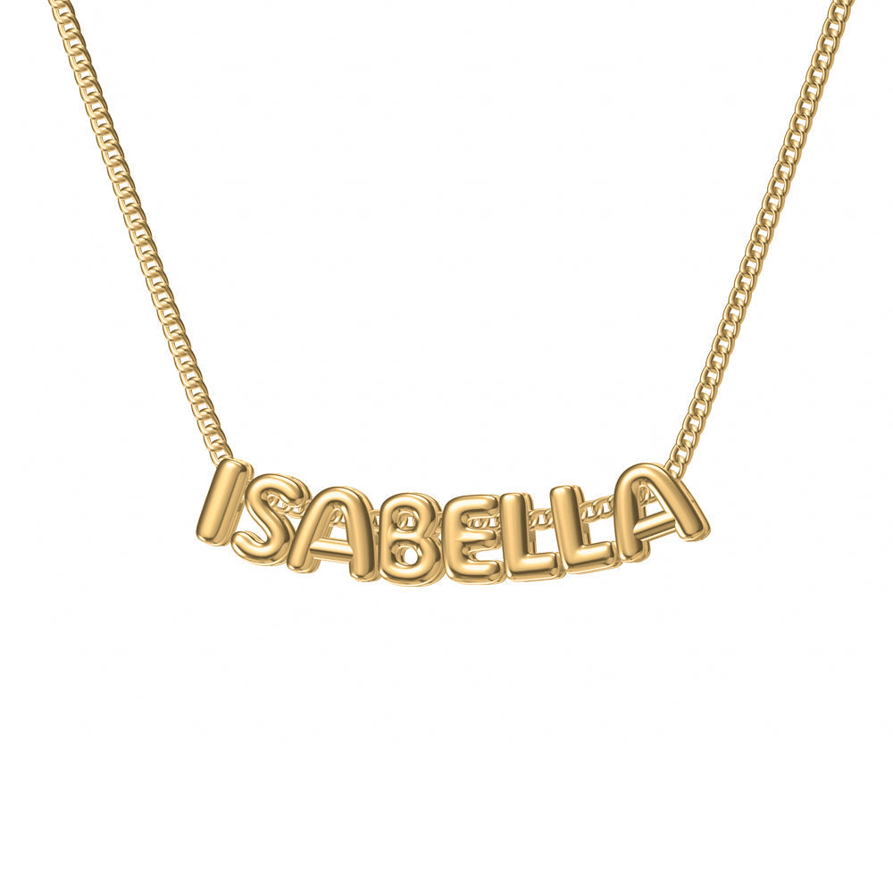 Create your own sterling silver necklace with custom bubble letters. Pick any name, word, or phrase up to 10 characters long. Each letter is crafted in a fun, chunky style that stands out.